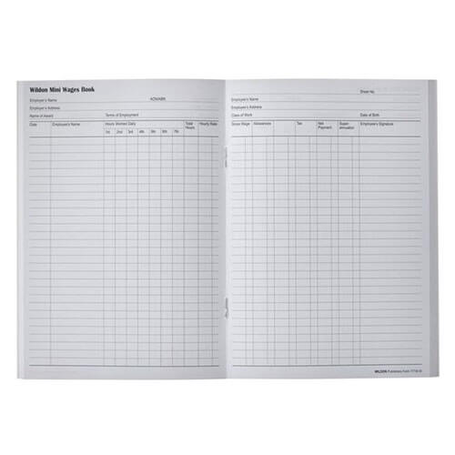 Ta książka mini -wynagrodzeń Wildon 171W to łatwy i skuteczny sposób na rejestrowanie stawek godzinowych i godzin pracy w ciągu 7 dni pracy. Ta książka jest wstępnie wydrukowana, więc wszystko, co musisz zrobić, to wypełnić swoje dane. Ta książka zawiera sekcje dla nazwisk, nagrody, DOB, stawki, godzin, podatku, dodatków, emerytury i innych.
