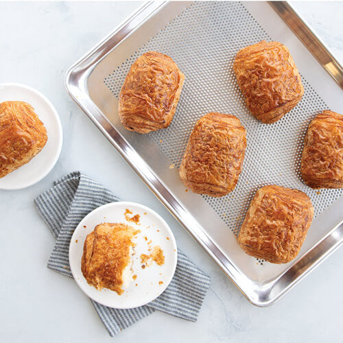 Perals Perals Perals Perals Peralping Półka jest wykonany z czystego aluminium dla doskonałej przewodności cieplnej i za każdym razem wytwarza równomiernie zrumienione wypieki. Dodatkowo przepływ powietrza stworzony przez małe dziury tej patelni jest idealny, gdy chcesz chrupiącą zewnętrzną skórkę do wypieków, takich jak chleb, rogaliki, bułki obiadowe, pizza, precle i wiele innych.