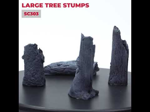 - Cztery pni suche drzew różnych europejskich drzew, ze szczegółową teksturą kory i wnętrza. Idealny do umieszczania na dioramach, wybierając tony do przedstawiania mokrego lub suchego środowiska, nawet dodawania kępek lub mchu z scenerii Vallejo.