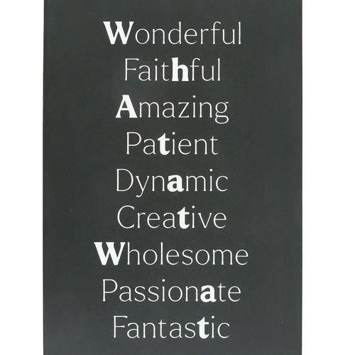 Get the message across with this subtly offensive hanging sign. Features "Wonderful, Faithful, Amazing, Patient, Dynamic, Creative, Wholesome, Passionate, Fantastic" text with strategically bolded letters that spell out a special phrase for those with a keen eye. Please note: This is a novelty gift intended for adults only. Designed as part of the Dark Humour range of rude and sweary gifts.