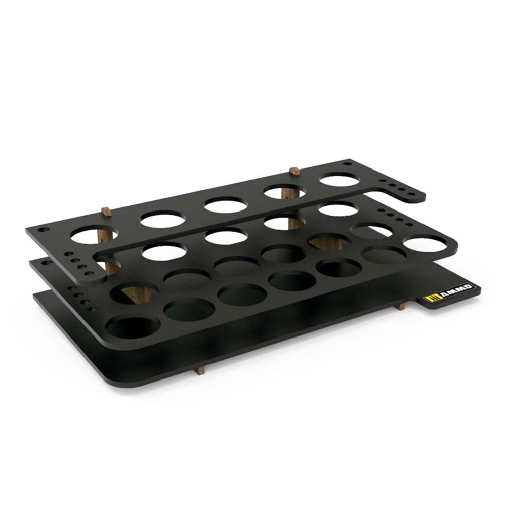 Module manufactured in black satin finish, ideal for 18 x 17ml bottles of AMMO of Mig Jimenez acrylic paint or 5 bottles of Dio DryBrush colours. Accommodates 10 brushes of various sizes.