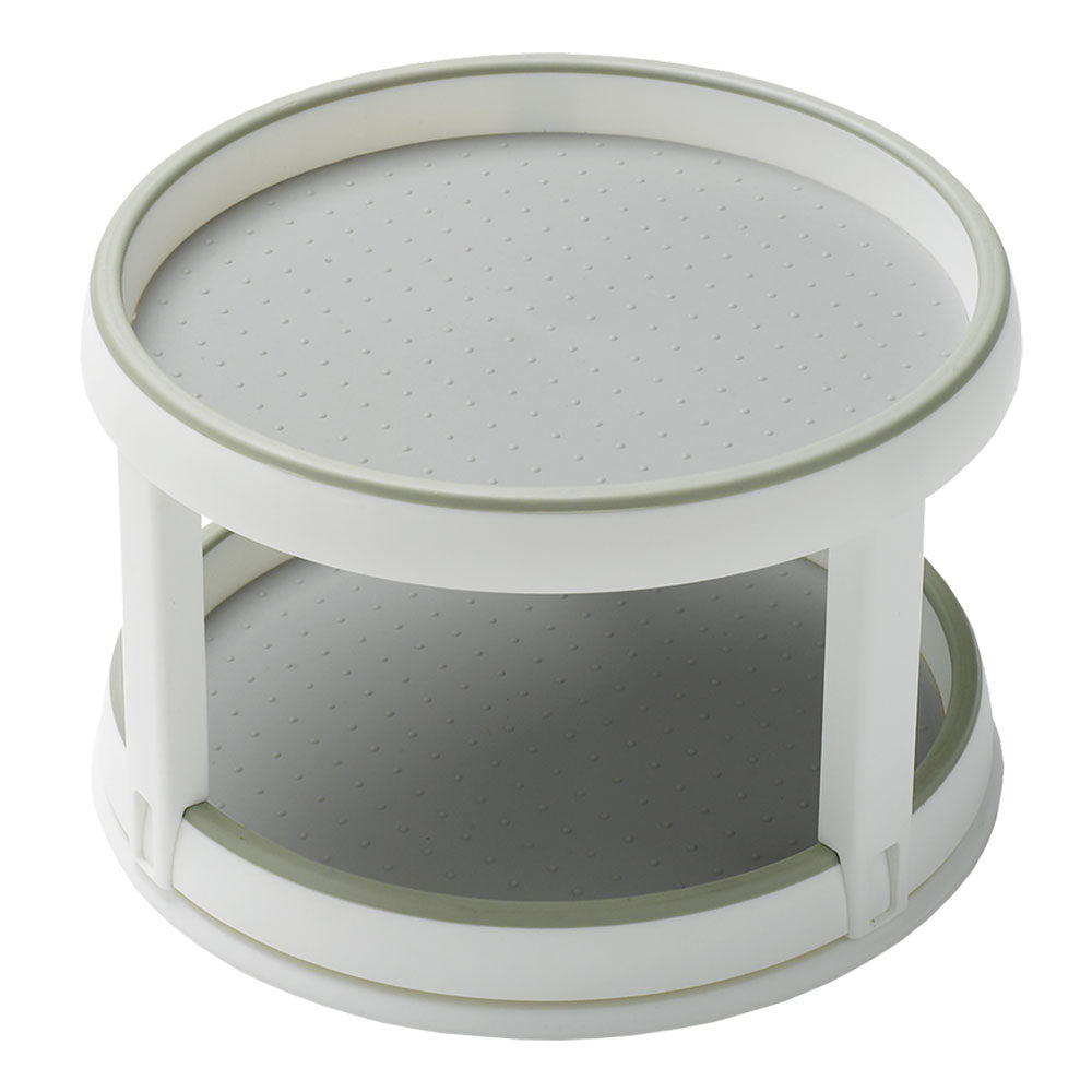The wide base provides stability to the tiered turntable, while the non-slip lining keeps items secure. Great for tabletops, fridges, and cupboards.