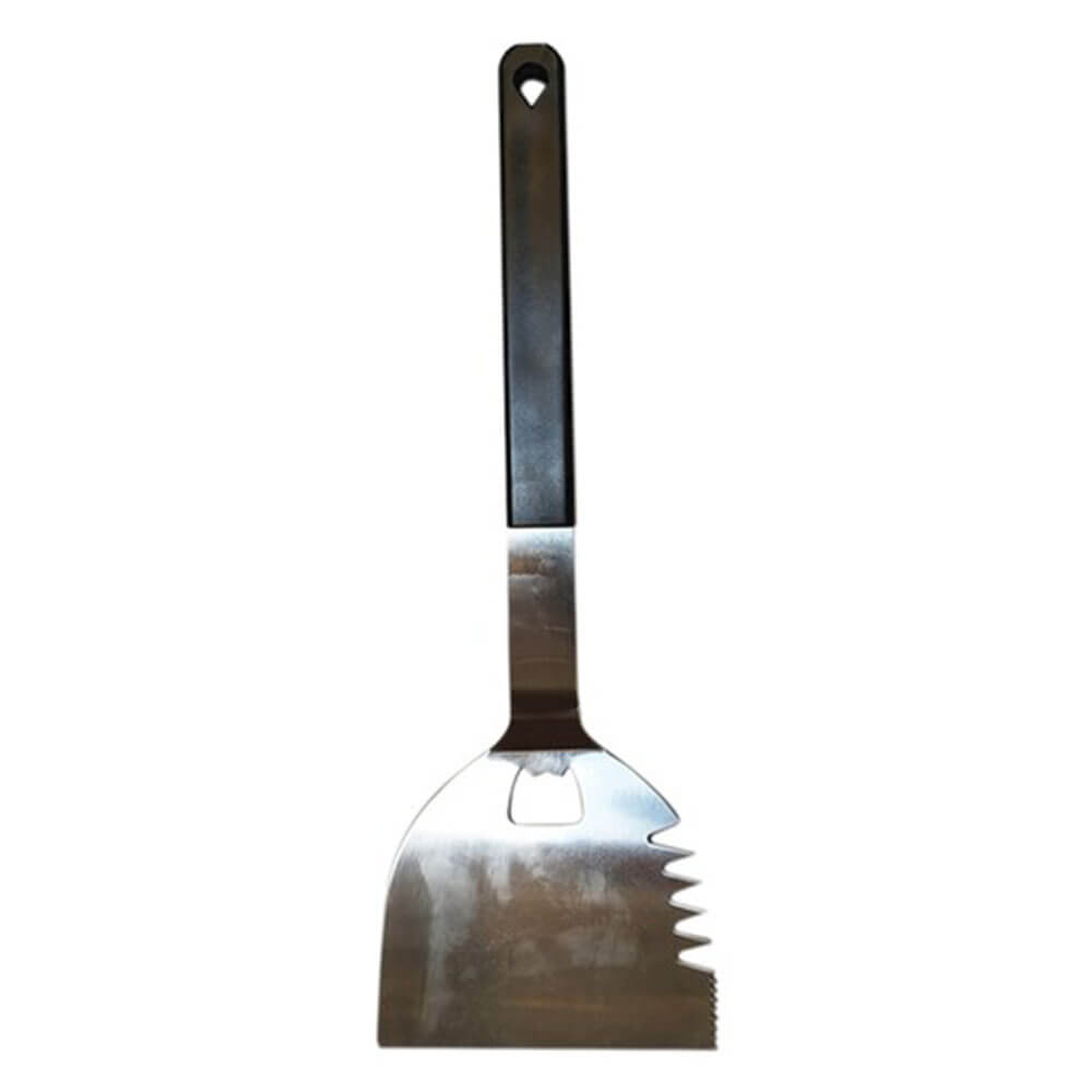 El campeón de barbacoa al aire libre Magic Spátula está hecho de acero inoxidable y con su mango largo, puede voltear su comida sin quemarse las manos. Su abridor de botellas es bastante útil cuando bebes cerveza junto a tu barbacoa.