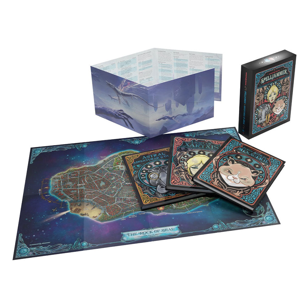 • El libro de tapa dura de la guía de 64 páginas de Astral Adventurer que presenta el avión astral como un entorno de campaña, que incluye opciones de personajes basados ​​en el espacio, hechizos, elementos mágicos, reglas espaciales, barcos y más