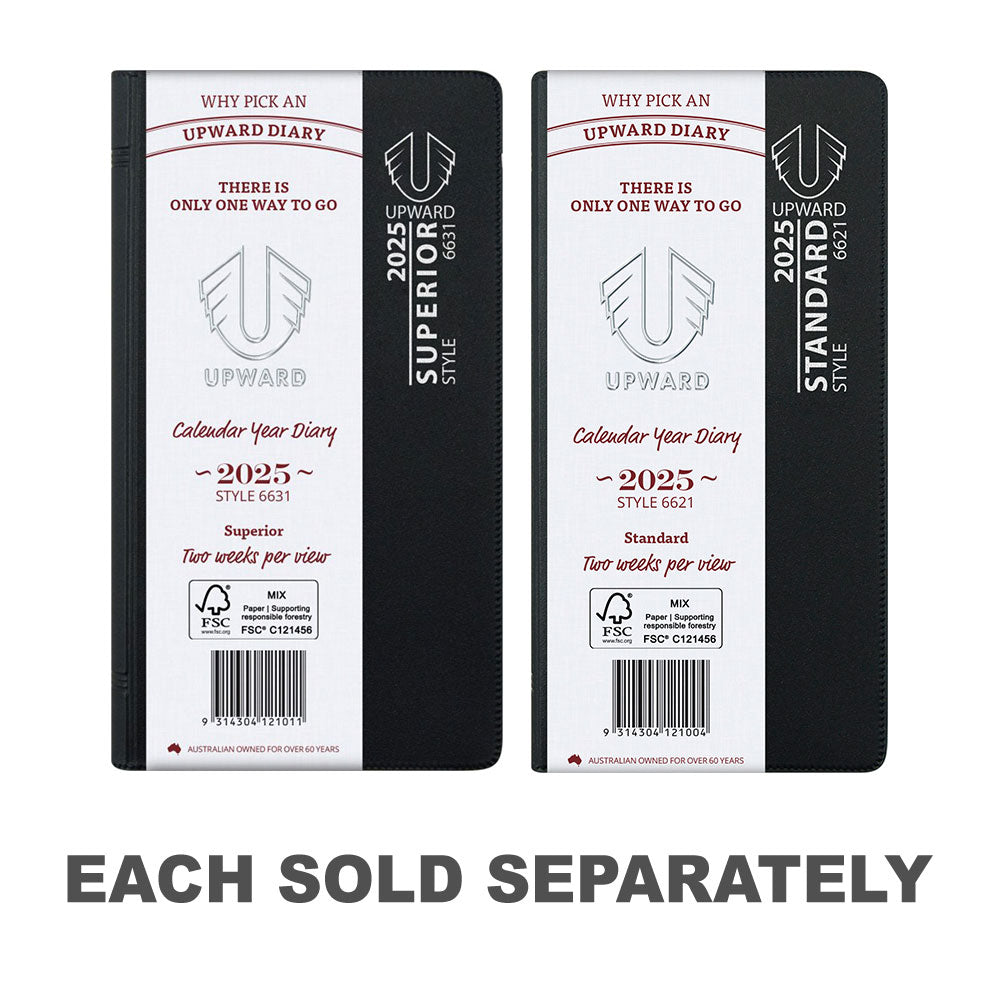 Upward PVC Cover 2WTV 2025 Diary 148x74mm (Black)
