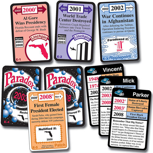 • O conjunto inclui 5 novas cartas da linha do tempo, 3 novos patches e 3 novos personagens que dependem desta nova faixa de linha do tempo